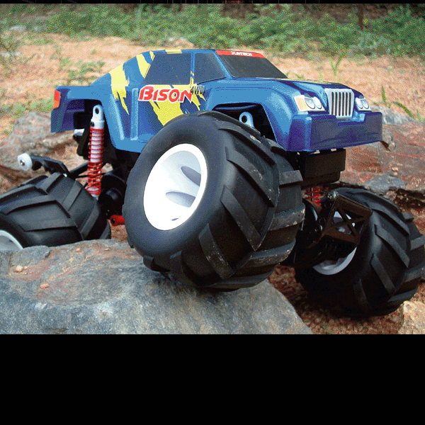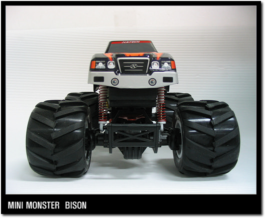 바이슨은 길이X너비X높이가 220X180X130mm로 일반 몬스터트럭의 절반 정도 크기지만 대형 몬스터트럭의 강한 오프로드 성능을 그대로 재현한 게 특징이다. 280 모터와 4륜구동 시스템을 적용했으며 험로주행을 위해 70mm 에어 타이어를 장착했다. 6개의 드라이브 샤프트와 2개의 디퍼런셜과 스프링 댐퍼로 외부충격을 흡수할 수 있도록 배려했으며 리지드 액슬 방식의 3링크 서스펜션을 사용한다.