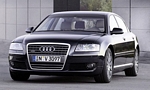 ▲아우디 A8 6.0 : W형 12기통 6.000cc급 엔진이 탑재돼 최고 450마력을 발휘한다. 아우디가 북미 시장에 처음 선보이는 모델로 라디에이터 그릴을 감싸고 있는 크롬 라인이 돋보인다.