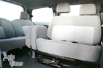 9인승의 실내는 다양하게 연출할 수 있다. 풀플랫 시트를 만들어 편히 누울 수 있는 건 기본. 2열 시트는 90도, 180도로 회전시킬 수 있어 좌석 배치를 기분에 따라 달리 할 수 있다. 앞을 보는 위치에서 옆이나 뒤를 볼 수 있게 좌석을 돌릴 수 있는 것. 좌석을 뒤로 돌려 3열 시트와 마주보게 배치하면 기차를 탄 기분을 낼 수도 있다.
