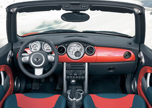 미니 카브리올레는 4인승에 자동 루프를 기본 장착, 버튼을 한 번 누르면 40cm 정도 열리고 다시 버튼을 누르면 뒤에서부터 완전히 열린다. 루프가 열리는 데까지 걸리는 시간은 15초. 인테리어는 알루미늄과 우드 소재 등을 옵션으로 고를 수 있다.