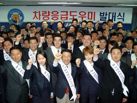 이 날 발대식에서 현대차 응급 도우미들은 운행중 노상에서 차 고장 등으로 어려운 상황에 처한 현대차를 발견했을 때 숙련된 정비기술을 활용, 응급조치와 신속한 정비서비스를 받을 수 있도록 도와주는 활동을 벌이기로 다짐했다.