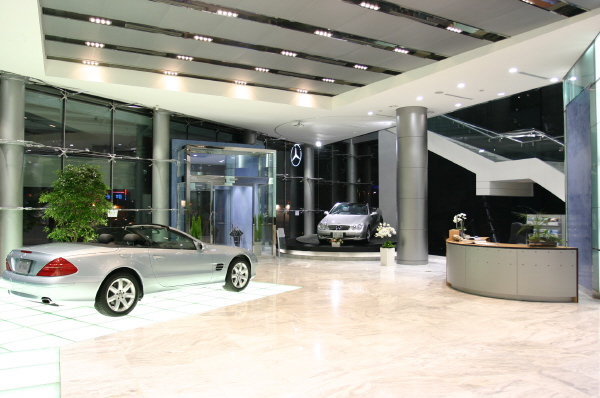 내부에는 1층에 실내연못과 벽천을 만들어 호텔 로비와 같은 분위기를 살리고 있고 SL, SLK 등 볼거리 중심의 차를 배치했다. 2층은 국내 유일의 S클래스 전용층으로 국내에서 팔리는 S클래스 전 모델이 전시돼 있다. 3층에는 E, C, M클래스를 선보였다. 또 지하 1층에는 4개의 작업대를 갖춘 최신식 퀵서비스센터가 있어 쾌적한 휴게실에서 기다리며 빠른 정비를 받을 수 있다.