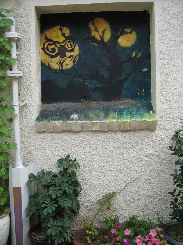 삼청동 큰길에서 금융감독원을 지나 감사원쪽으로 꺾어져 올라가다 보면 "으흠!"하는 감탄사를 절로 내뱉게 만드는 풍경과 만난다. 재미화가 문범강의 작품을 벽면에 옮긴 와인바 ‘BG MOON’이 시선을 잡아챈다. 문 화백은 기괴하면서도 아름답고, 섬뜩하면서 묘하게 에로틱한 작품세계로 유명하다. 카페 이름도 그의 이름 영문 이니셜을 땄다.