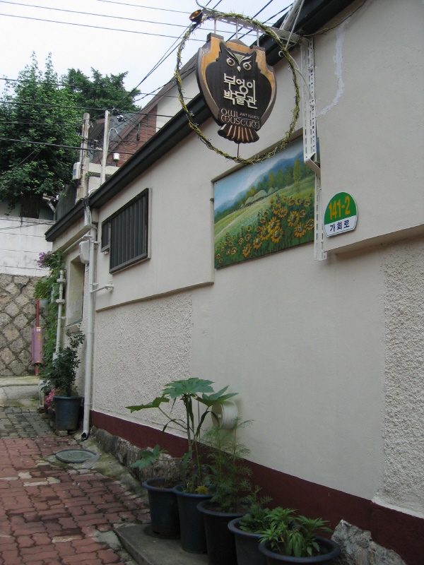 이 곳에서 더 좁아지는 골목으로 들어서면 부엉이 모양의 귀여운 간판을 만난다. 건물 외벽에 온통 부엉이 벽화와 아기자기한 꽃 화분을 장식해 놓은 ‘부엉이박물관"이 그 곳에 자리하고 있다.