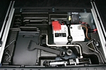 엔진룸을 열어 보면 직렬 6기통 엔진이 세로로 자리잡고 있다. 배터리는 엔진룸에 없다. 뒤쪽 트렁크 공간에 위치해 있다.