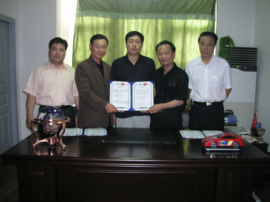 | 윤병우 기술인협회장(왼쪽에서 두번째)이 중국 배훈학교 및 라이차이나와 자매결연식을 가졌다. |
