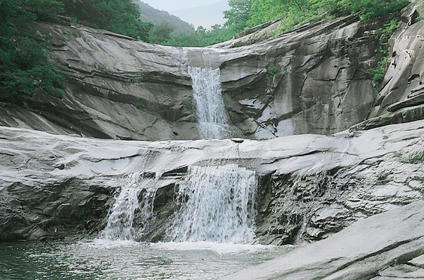 | 비단처럼 흐르는 고운 폭포와 아름다운 연못이 어우러진 호박소. |