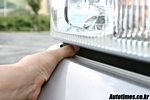차의 보디 표면은 전체적으로 큰 단차없이 야무지게 맞물려 있고 틈새도 좁다. 그러나 뜻밖에도 라디에이터 그릴과 헤드램프가 범퍼와 만나는 부분에 엄지 손톱이 드나들 만큼의 틈새가 벌어져 있다. 보닛은 라디에이터 그릴 윗 부분에서 여닫는데 큰 틈새가 아래에 왜 있는 지 의아하다.