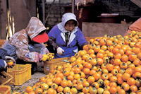 그 무렵 상주 곶감마을은 가장 바쁜 한철이 된다. 연시가 되기 전 나무에서 ‘털어낸’(따낸) 감들의 껍질을 벗기고 줄줄이 엮어 타래에 건 뒤 건조장에 내거는 작업이 이뤄지기 때문이다. 요즘에는 감 껍질 깎는 일을 기계가 대신한다지만 그래도 동리 아낙네들은 삼삼오오 모여 바쁘게 일손을 움직인다. 부지런한 아낙들의 움직임으로 집집마다 건조장에는 알몸이 된 감타래로 가득 채워진다. 건조장에 매달려 온몸으로 바람을 맞고 있는 그 모양 또한 장관이다.