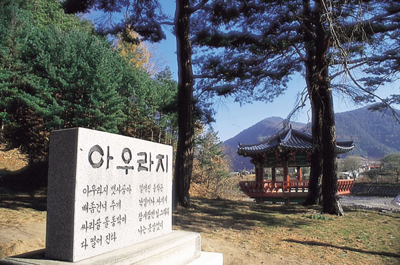 | 두 갈래로 흘러온 강이 하나로 아우러지는 곳이라는 뜻의 아우라지. |
