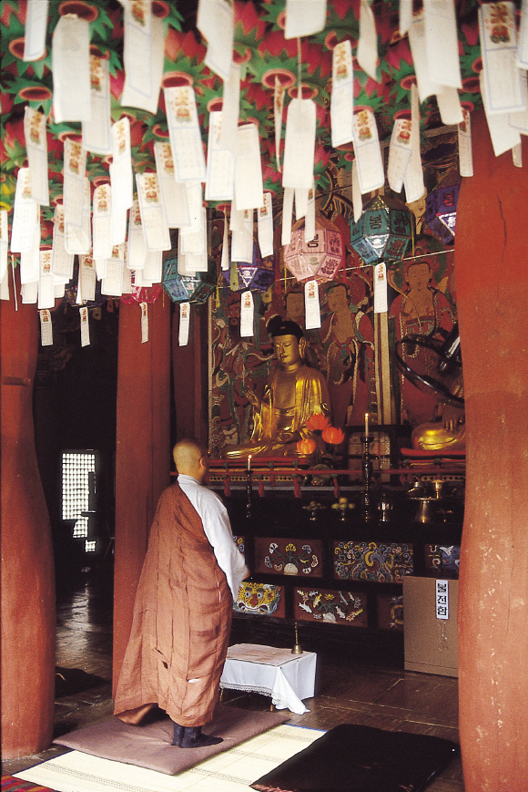 | 대흥사 대웅전에서 예를 올리는 스님. |