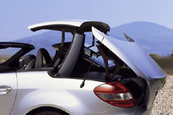 벤츠 SLK350도 키에 달린 버튼을 누르면 무선으로 차의 루프를 열거나 닫을 수 있다.