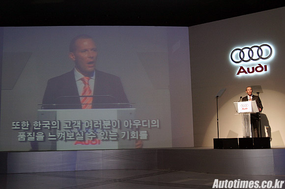 | 아우디 뉴 A4 신차를 소개하는 도미니크 보쉬 사장. |