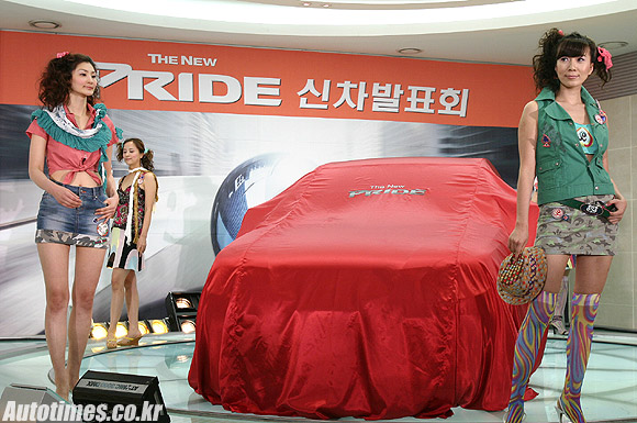 기아는 7일 서울 압구정동 국내영업본부 1층 전시장에서 프라이드 신차발표회를 갖고 연간 15만대 판매목표 달성을 위한 본격 활동에 들어갔다. 이번에 선보인 프라이드의 개발 컨셉트는 "뛰어난 성능과 안전성을 겸비한 아름답고 강한 차"다. 회사측은 이를 위해 26개월간 2,100억원을 투입, 프라이드를 만들어냈다고 밝혔다.
