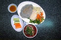실치회를 앞에 놓으면 누구나 그렇게 반문하고 말리라. 냉면 사리와 흡사한 색깔과 분량, 그 위에 살살 뿌려진 깨는 영락없는 모양이다. 거기에 곁들여진 채 썬 당근, 양배추, 무, 고구마 등의 야채등속과 참기름, 초고추장을 넣어 섞으면 마치 비빔냉면을 비비는 듯하다. 또한 냉면을 먹듯 실치회를 감아올려(?) 입안에 넣으면 어렴풋이 느껴지는 씁쓰름하면서도 고소한 끝맛.