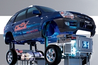 기아자동차는 스포티지 연료전지차를 선보였다. 스포티지 연료전지차는 80㎾급 연료전지 시스템과 20㎾급 리튬이온 폴리머 배터리(152V)를 탑재해 최고시속 150㎞, 0→시속 100㎞ 도달시간 15초를 기록한다. 영하 20도에서도 시동 및 운행할 수 있다. 152ℓ 고압 수소 저장탱크가 적용돼 운행거리를 300㎞까지 늘린 게 특징이다. 아울러 충돌 시 수소탱크와 배관이 손상되지 않도록 설계됐다. 기아는 2010년부터 이 차의 양산을 시도할 계획이다.
