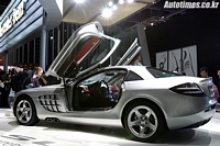 총 5대를 전시한 벤츠 전시관에서는 SLR 맥라렌이 국내에 처음 등장했다. 이 차는 1950년대 전설적인 스포츠카로 유명한 300SLR을 기본으로 제작됐으며 V8 5.5ℓ 626마력 엔진을 얹었다.