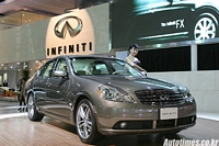 한국닛산은 총 7종의 모델을 발표했다. 주력모델인 세단 M시리즈는 V8 4.5ℓ 338마력과 V6 3.5ℓ 280마력 등 2종. 세단 Q45는 V8 4.5ℓ 340마력 엔진을 얹었다. G35는 세단과 4인승 쿠페가 있으며 V6 3.5ℓ 260마력(쿠페 280마력) 엔진을 채용했다. FX시리즈는 크로스오버 SUV로 V8 4.5ℓ 315마력 엔진과 V6 3.5ℓ 280마력 엔진이 있다.