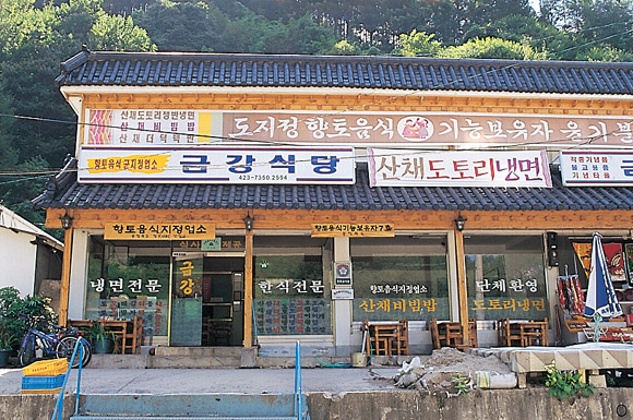 혹은 신단양 선착장 하류쪽으로 100m 남짓 내려가면 골목 안에 위치한 맛나식당(043-422-3380)의 메밀국수와 돼지고기 내장 두루치기가 별미다.