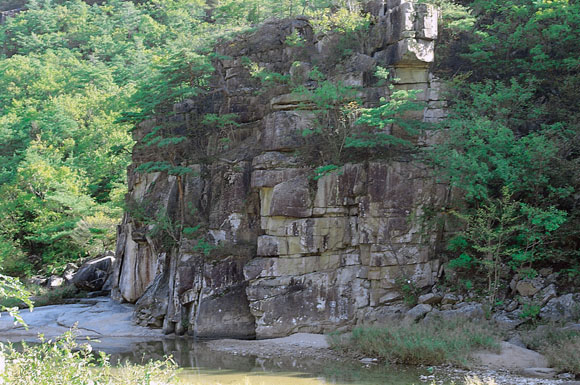 | 높이 솟은 바위가 마치 하늘을 떠받들고 있는 듯한 경천벽. |