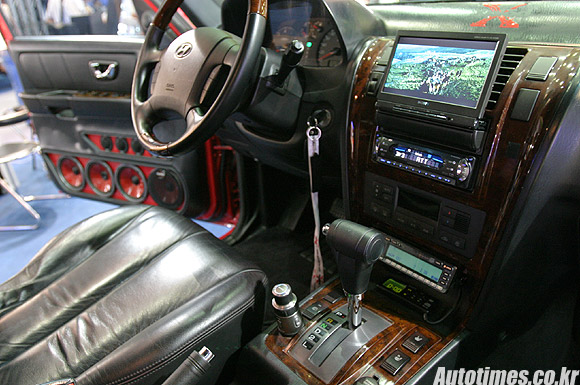 테라칸의 오디오 시스템은 카오디오 사운드의 화려함을 보여주고 있다. 오디오 시스템에만 1억원이 투자됐다. 쉽게 이해가 되지 않는 일이지만 테라칸의 공간을 살펴 보면 그 이상도 들었을 것처럼 보인다. 센터페시아에 적용된 헤드유닛은 CDX-C90, TV는 7인치 와이드 인대시 타입의 XTL-W70이 인스톨됐다. 또 CDX-848X CD 체인저와 DVX 100 DVD 체인저가 달려 달리는 음악공간을 실현했다.