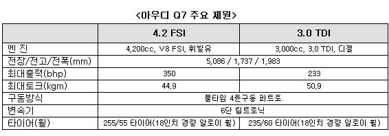 아우디가 오는 9월 프랑크푸르트모터쇼에서 소개할 첫 SUV Q7의 상세 제원을 18일 발표했다.