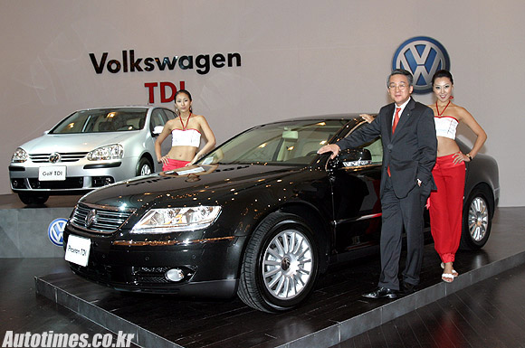 폭스바겐코리아(대표 박동훈)가 1일 서울 그랜드힐튼호텔에서 디젤엔진 TDI를 얹은 페이톤 V6 TDI, 투아렉 V6 TDI, 골프 2.0 TDI 등 3개 모델의 신차발표회를 갖고 판매에 들어갔다.