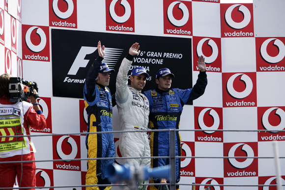 몇 랩을 남긴 상태에서 알론소는 가속 페달을 밟았다. 그는 이 날 최고속도인 359.5km/h까지 높이며 몬토야를 추격하기 시작했다. 몬토야는 타이어에 문제가 생겼으나 알론소의 추격전을 막판까지 막으면서 2.1초 차이로 우승했다. 결국 이탈리아 몬자 서킷의 경기에선 몬토야가 우승컵을 거머쥐었다. 그 뒤를 알론소, 피지겔라, 라이코넨, 투룰리, 랄프 슈마허의 순으로 골인했다.