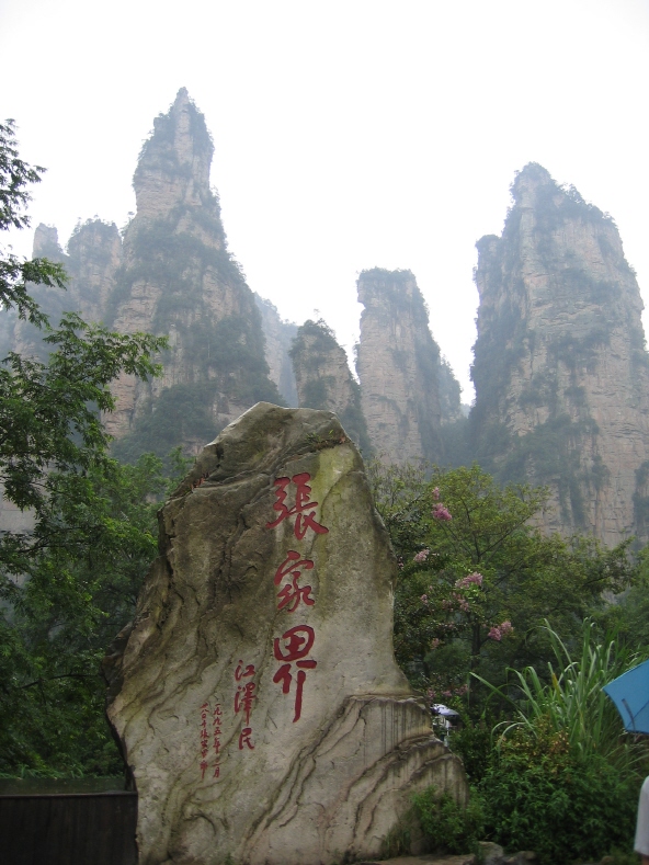 장자지에 삼림공원 입구에는 1995년 쟝쩌민(江澤民) 당시 중국 국가주석이 방문해 썼다는 ‘張家界’라는 글자 석 자가 관광객을 맞이한다. 장자지에의 본격적인 개발이 시작된 건 이 때부터라고 보는 게 맞을 지도 모른다.