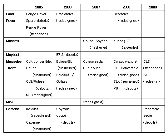 *CLS : 4도어 모델을 내년초 미국에 판매한다. 페이스리프트모델의 출시시기는 2009년.