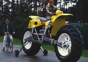 그는 이에 앞서 1999년 세계에서 가장 큰 오토바이를 선보여 화제가 되기도 했다. 그가 만든 ‘빅토(Bigtoe)’는 높이 2,300mm, 길이 4,700mm로 재규어 V12 300마력 엔진을 장착해 최고시속 100km의 성능을 보였다. 또 500W CD 스테레오 시스템까지 달았다. 비베르그는 빅토를 만들기 위해 6년동안 작업했으며 총 8만달러의 비용이 들었다고 한다. 물론 이 바이크를 타고 달리는 건 자유지만 도로 위로 나오면 불법이다.