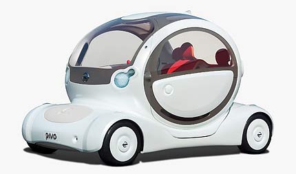 모터쇼 개막 전부터 많은 자동차마니아들의 기대를 한 몸에 받고 있는 컨셉트카 피보는 한층 개선된 기술이 적용된 전기차다. 외관은 골프 카트와 에그 타이머(달걀 삶는 시간을 재는 모래시계) 등을 조화시킨 모습이다. 유리로 구성된 둥근 차체는 2차대전 당시 폭격기 윗부분에 설치된 포탑처럼 회전하는 구조로 설계돼 앞과 옆, 뒤까지 모두 볼 수 있다. 주차할 경우엔 차체를 아예 뒤로 돌린 뒤 앞으로 갈 수 있어 편하게 차를 세울 수 있다. 동력은 회전차체 아래에 장착된 고성능 배터리로, 기존 엔진보다 훨씬 작아 차 디자인의 유연성을 높일 수 있으며 최고시속 80km까지 달린다.