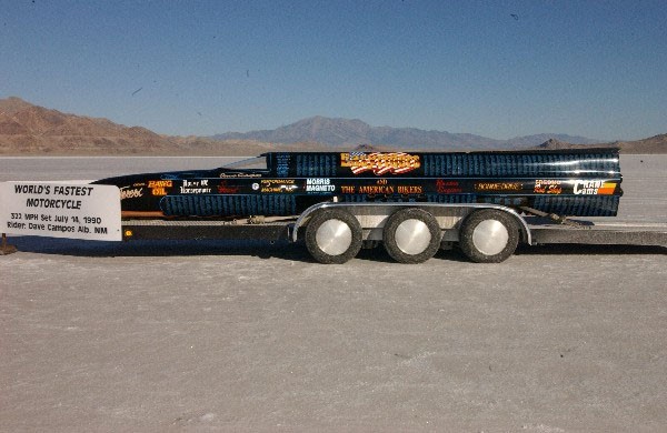 자동차 기네스 세계 기록에 따르면 세계에서 가장 빠른 모터사이클의 속도는 1990년 미국 유타주 본네빌에서 데이비드 캠포스가 세웠다.