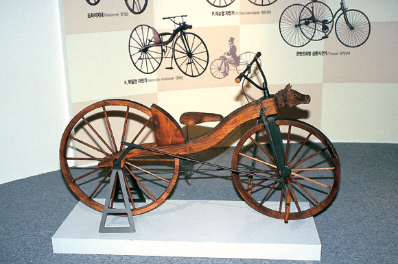 | 자전거박물관에 전시된 목제 자전거. |
