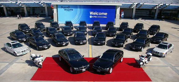 이 자리에는 김효준 BMW그룹코리아 사장과 APEC 2005 준비기획단, 경호통제단, 부산시 APEC 준비단 관계자들이 참석했다. 이번에 전달된 차들은 오는 18일부터 양일간 열리는 2005 APEC 정상회의에서 21개국 정상 및 영부인, 외무와 통상장관 등 고위 관료들이 이용할 760Li를 포함해 7시리즈 88대, 조직위원회와 경호차로 사용할 5시리즈와 X5 등 총 150대다. 금액으로 환산하면 227억4,420만원에 이른다. 이 차들에는 모두 "APEC 리미티드"라는 뱃지가 붙는다.