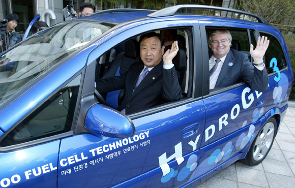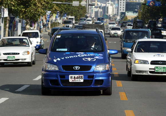 GM대우는 16일 수소연료전지차와 관련된 정부의 정책과 필요한 제반 인프라 등이 갖춰지면 향후 한국시장에 GM대우가 개발한 수소연료전지차를 내놓겠다고 밝혔다. GM대우는 수소연료전지차 개발을 위해 GM의 수소연료전지 기술을 활용하고, 국내 적용을 위한 기술 타당성 조사를 벌일 계획이다. 또 본격 개발에 앞서 수소연료전지차의 한국 내 시범운행을 진행할 예정이라고 강조했다. 이와 관련, 닉 라일리 GM대우 사장과 이희범 산업자원부 장관 등은 부산 롯데호텔에서 GM대우 수소연료전지차 프로젝트 발표 및 시승 행사를 가졌다.