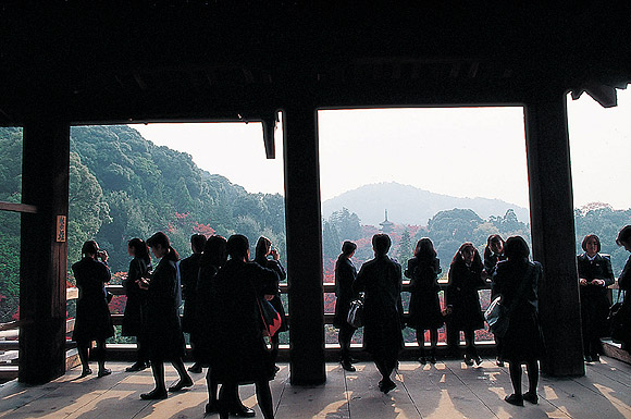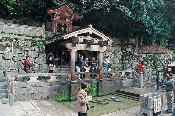 교토는 옛 해자를 따라 산책해도 좋고, 기요미즈데라(淸水寺)를 중심으로 마루야마공원까지 천천히 거닐며 주변의 다채로운 기념품점과 골동품점을 구경하는 재미도 남다르다. 전통적이고 세련된 가게들이 줄지어 늘어서 있다. 기요미즈데라는 높은 절벽 위에 지어진 사찰로 그 아찔한 위치에서 내려다보는 교토시내의 전경이 일품이다. 일본에서는 대담한 일을 할 때 “기요미즈의 무대에서 뛰어내린다”라는 인용을 흔히 하는데, 이 곳에 오면 그 말뜻을 이해할 수 있다. 본당 밑에 세 줄기로 흘러내리는 청수는 오토와폭포. ‘기요미즈’(淸水)라는 절 이름의 유래가 되기도 했는데, 이 영천에서 솟아오르는 샘물을 국자로 떠서 마시면 장수나 원하는 일을 성취하고 은혜를 받을 수 있다고 한다.