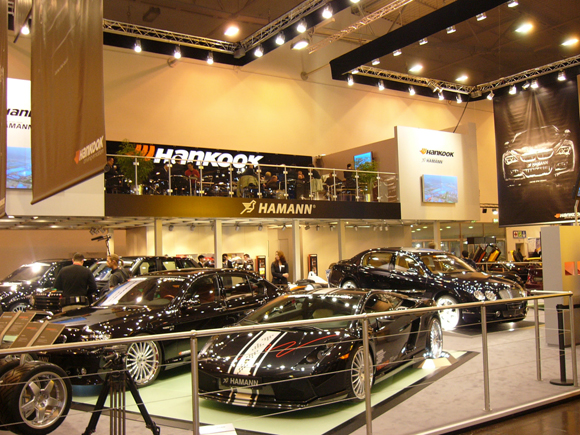 올해 모터쇼에 한국타이어는 각종 튜닝카 및 유럽지역 전략제품들로 유럽시장에서 팔고 있는 고성능 제품들을 출품했다. 따라서 고속주행 및 조종안정성에서 탁월한 성능을 발휘하는 UHP 타이어인 벤투스 S1evo, 제동성과 소음을 대폭 줄인 겨울용 W300, 독일 F-3에 공식 타이어로 제공되는 F-200 포뮬러 등 25개 제품을 선보이고 있다. 특히 한국타이어와 전략적 제휴를 맺은 하만의 차가 한국타이어의 최신 제품으로 무장하고 전시돼 눈길을 끌고 있다. 슈퍼카의 지존으로 불리는 페라리 430을 비롯해 BMW M5, 람보르기니 갈라도 등 양산차만으로도 최상의 성능을 자랑하는 자동차들이 한국타이어의 초고성능 제품과 하만의 튜닝기술이 결합돼 2% 부족한 부분까지 보완하고 있다.