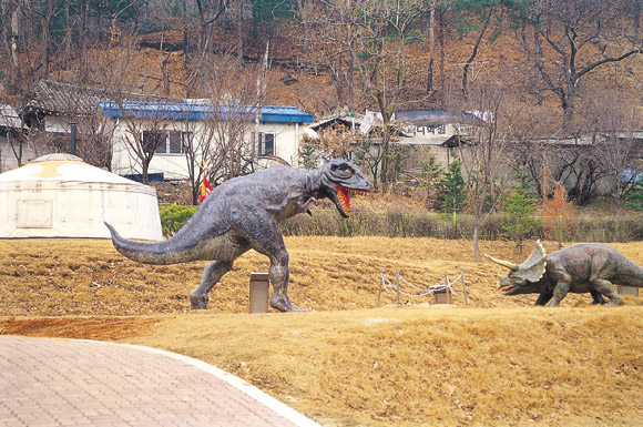 | 몽골문화촌에 만들어진 공룡 모형. |