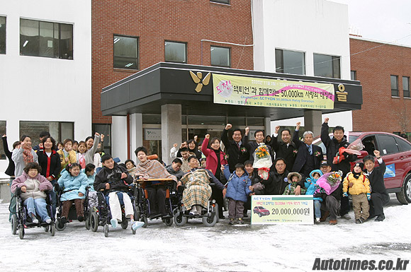 쌍용자동차(대표 최형탁)가 자동차동호회연합회(회장 이동진), 한국복지재단(회장 김석산)과 함께한 "액티언, 5만km 사랑의 대장정" 완주 종료 행사를 21일 경기도 광주의 중증장애인 요양시설인 한사랑마을에서 갖고 도전 성공으로 마련한 2,000만원의 기부금을 전달했다.