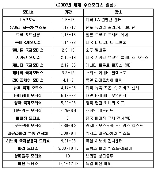 2006년에도 지난 4일 개막된 LA오토쇼를 시작으로 세계 곳곳에서 굵직굵직한 모터쇼가 열린다.