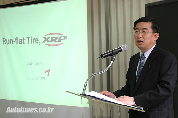 금호는 국내 업계 최초로 선보이는 런플랫 제품인 XRP의 성능 시연 및 신제품 발표회를 11일 용인 에버랜드 스피드웨이에서 가졌다. 시연회에서는 일반 타이어와 런플랫 타이어에 화약을 장착해 타이어를 폭발시키거나, 못이 있는 지지대 통과 후 급회전(슬라럼) 주행 등을 통해 두 타이어의 성능을 비교했다.