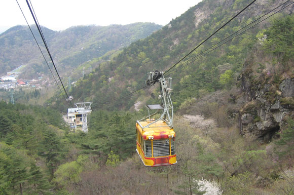| 케이블카로 중턱까지 오른다. |