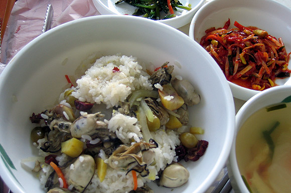 빼놓을 수 없는 맛은 또 있다. 임금님 수라에 올랐다는 참굴로 지은 굴밥의 고소한 맛. 이 곳에서 채취하는 참굴은 속살이 쫀득하고 살눈이 두터워 남해산 굴보다 훨씬 맛있기로 소문났다. 굴밥은 쌀과 함께 굴을 솥에 넣어 밥을 지은 후 갖은 양념장을 넣고 비벼 먹는다. 은은한 굴향기와 입안에 씹히는 굴의 육질이 감칠맛을 낸다. 그래서 창리 주변에 유일하게 번성하는 게 크고 작은 굴밥집이다. 부석주유소가 있는 휴게소 일대는 바다를 안고 줄지은 포차 굴밥집들이 늘어섰다. 허름해 보이지만 후회없는 맛을 선보인다. 제대로 된 식당을 찾고 싶다면 창리 입구에 있는 ‘전망대회센터굴밥집(041-663-9121)’이 있다.