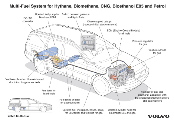 볼보는 최근 프랑스 파리에서 열린 ‘미쉐린 챌린지 비밴덤 2006’에서 화석연료가 아닌 재생연료로 달릴 수 있는 멀티-퓨얼 모델을 선보였다. 하나의 대체연료만으로는 친환경 요소를 만족시킬 수 없으며, 각 나라마다 유용하게 쓸 수 있는 연료가 서로 다를 수 있다는 판단에서 멀티-퓨얼 모델을 개발했다고 회사측은 밝혔다. 볼보의 멀티-퓨얼 모델에 각각의 연료가 주입되면 차체는 그 연료에 맞게 가장 이상적인 엔진, 변속기 등을 최적화하며, 5개 연료 중 어떤 연료로든 최고의 성능을 낼 수 있도록 만들어졌다.
