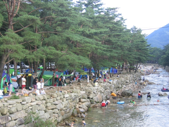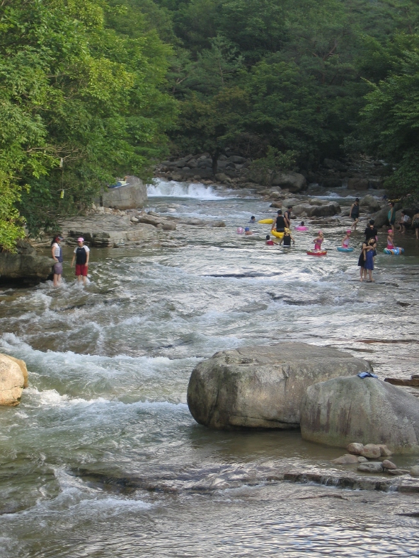 그런데 아니다. 송계계곡의 아름다움을 제대로 보고 즐기려면 바로 지금이다. 몰려든 사람들로 걸음조차 옮기기 어려운 피서철 절정기 때 그 곳에 간다는 건 송계계곡의 매력을 절반도 보지 못하는 셈이다. 맑은 계곡물이 보기만 해도 시원하고, 적당한 인파가 흥을 돋우는 이 맘 때 송계계곡 나들이는 숨은 매력까지 샅샅이 살펴볼 수 있는 여유가 있다.