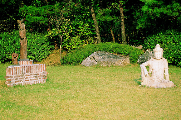 맑은 공기와 바람, 눈부신 가을햇빛을 맘껏 희롱할 수 있는 야외 조각공원에는 미륵삼존대불, 비로자나불, 백의관음, 삼층석탑 등이 조화롭게 자리잡고 있다. 곳곳에 다양한 돌조각이 즐비하고, 앙증맞은 연못 위로는 나무다리가 놓였고, 그 아래로는 색색의 금붕어가 한가롭게 유영한다.