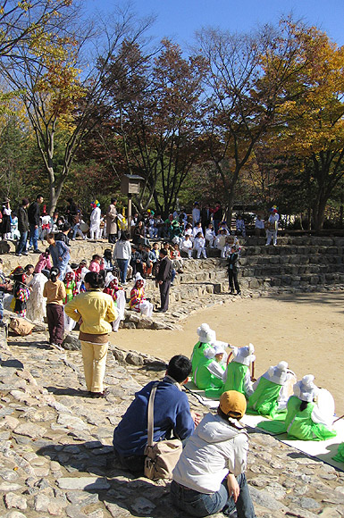 하지만 한국민속촌의 이 가을을 만나 보라. 비처럼 날리는 낙엽을 맞으며, 수북수북 쌓인 나뭇잎을 밟으며, 청사초롱 이끄는 마을 안으로 들어서면 거기 조선의 가을이 산수화처럼 펼쳐진다. 때마침 어디선가 낙엽 태우는 냄새가 바람에 실려 오기라도 하면 마음은 보자기처럼 헤, 풀어진다.