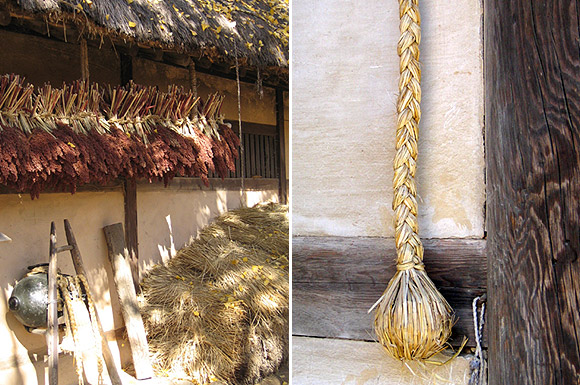 어느 농가 흙벽에 걸린 이 것은 무엇일까. 새끼를 꼬아서 밑둥을 둥글게 말아 놓은 것 같다.