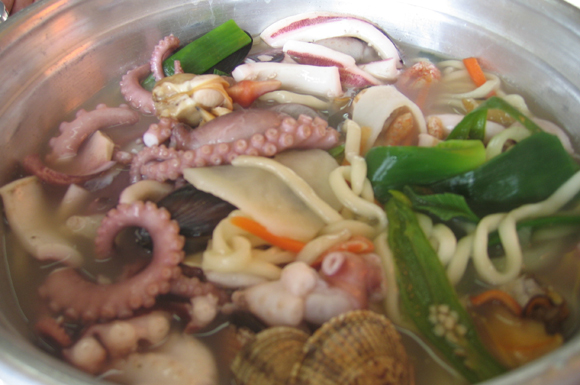 젓갈에 싱싱한 해산물까지, 어느 틈에 묵직해진 장바구니를 들고 돌아서면 줄지은 좌판의 즉석 횟감이 발길을 잡는다. 참새가 방앗간을 어찌 그냥 지나치랴. 사실 소래포구 입구부터 크고 작은 횟집이 즐비하게 늘어서 있으나 이 곳에선 오히려 방파제쪽으로 자리한 좌판에서 먹는 게 제멋이다. 부담없는 가격에, 입맛대로 메뉴를 고르면 즉석에서 회를 떠주거나 이미 떠놓은 회 한 접시를 받아들고 방파제로 나간다. 방파제에는 돗자리를 깔고 판을 벌린 사람들로 가득하다. 그 사이를 비집고 들어가 자리잡고 싱싱한 회를 안주삼아 소주 한 잔을 곁들이면 쌀쌀한 초겨울 바람도 미풍처럼 부드럽게 느껴진다.